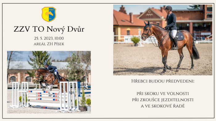 Srdečně vás zveme na Zkoušky základního výcviku 3letých hřebců z testační odchovny Nový Dvůr.